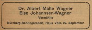 Wagners journalistische Karriere, die ihn 1924 als Chefredakteur zu der Nürnberger Zeitung nach Süddeutschland führte, wurde durch die rassistische Politik der Nationalsozialisten 1934 zerstört: wegen seiner jüdischen Abstammung emigrierte er nach Großbritannien, und seine Frau ging mit ihm. Gemeinsam arbeiteten sie in London für die BBC, u.a. mit einer Hörfunkserie „Die Abenteuer von Paula and Peter; ten broadcast dialogues in German“. Wagner wurde 1949 Professor in Jena, kehrte aber nach (ideologischen) Auseinandersetzungen 1955 zurück nach London, wo er 1962 starb. Else Johannsen-Wagner arbeitete auch nach seinem Tod bis 1972 weiter für die BBC, vor allem mit Deutschkursen und Komponistenporträts (Link zu den Einträgen im Archiv der BBC). Das Datum ihres Todes ist unbekannt.