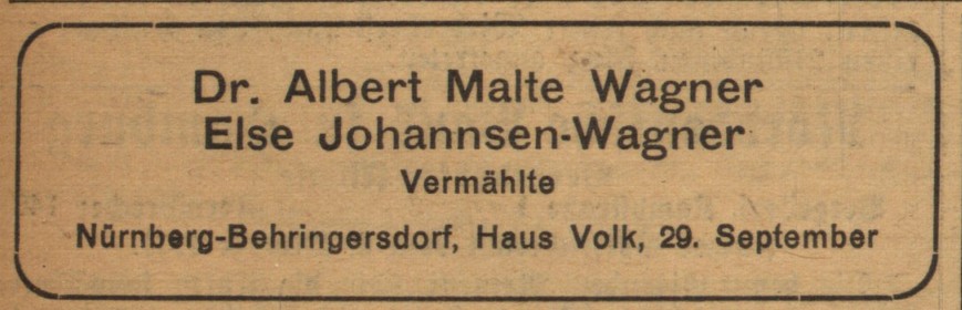 Dennoch sollte ihre Zeit am Schauspielhaus ihr weiteres Leben prägen: der oben genannte Theaterkritiker des Fremdenblatts war ein gewisser Dr. Albert Malte Wagner …