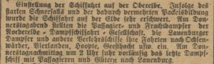 Der Winter kam früh und heftig: auf der Oberelbe ging in der Schifffahrt nichts mehr, dort gingen bald die Fußgänger vom hamburgischen zum hannöversch-preußischem Ufer quer über den Strom (siehe zu diesen Elbquerungen den Artikel über Eisbrücken und Eisstopfungen).