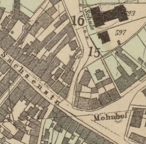 Die Bergedorfer Reeperbahn war 1926 ein kurze, schmale Verbindung vom Mohnhof bzw. der Wentorfer Straße zur Brauerstraße (heute Chrysanderstraße), eingezwängt zwischen fensterlosen Seitenwänden von Häusern und daran anschließend zwei Meter hohen Begrenzungsmauern – die Situation ist heute fast unverändert, wie eine Fotografie bei Wikipedia zeigt, nur sind die Mauern durch hohe Zäune ersetzt worden. Auf der Karte 1904 ist der Weg (ohne Nennung eines Namens) eingezeichnet: er führt von der Ziffer „15“ in südsüdöstlicher Richtung zum Mohnhof.